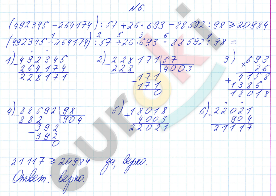 4 класс. Моро. Учебник №1. Ответы к стр. 54