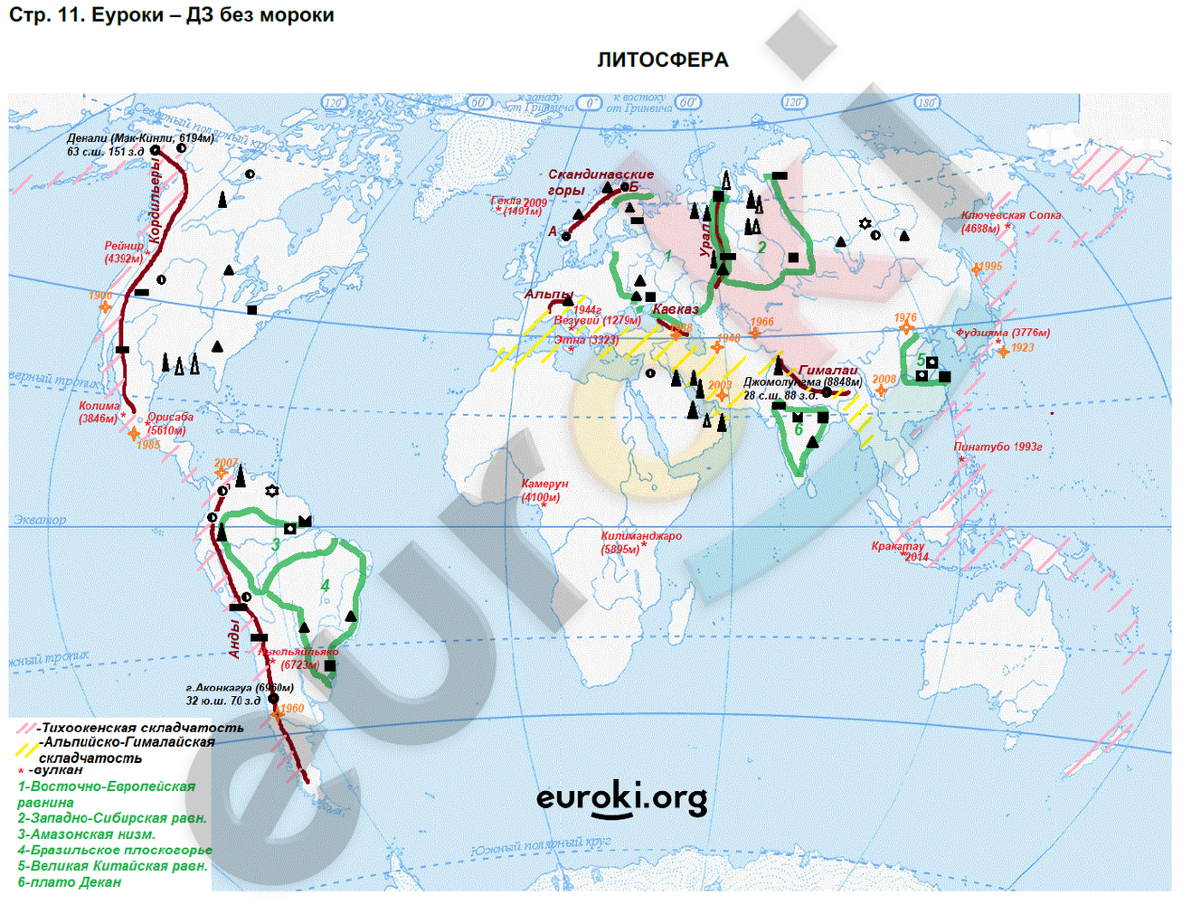 Для выполнения заданий будем рассматривать карты атласа на страницах 6, 7, 8 и 9.